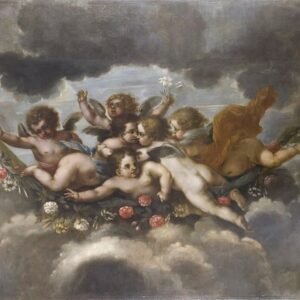 Blomstersmyckande putti