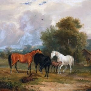 Horses Grazing- Mares and Foals in a Field