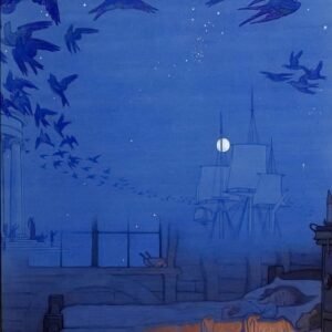 Two Girls by a Table Look out on a Starry Night