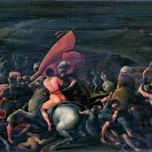 Battle with knights in front of Roman ruins