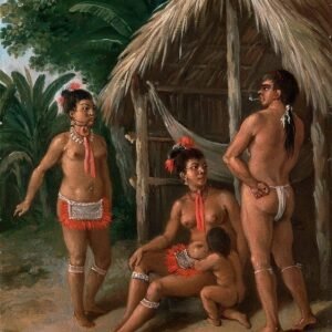 A Leeward Islands Carib family outside a Hut