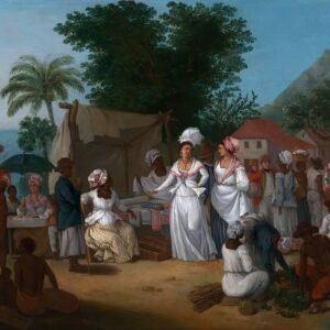 A Linen Market with a Linen-stall and Vegetable Seller in the West Indies