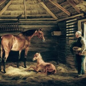 English Mare With Her Foals