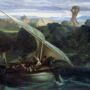 Polyphemus attacking sailors in their boat